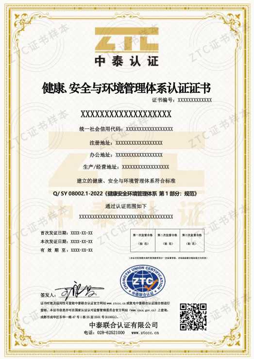 認證標準1:CTS Q/SY08002.1-2022《健康安全環境管理體系 第1部分:規范》