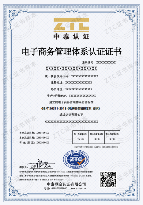 認證標準:GB/T 36311-2018《電子商務管理體系 要求》