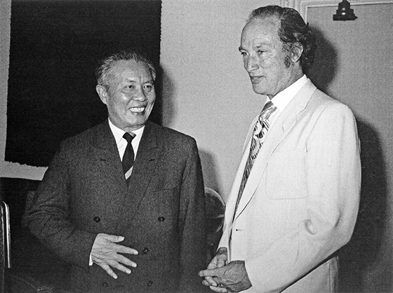 1973年10月10日,特魯多帶著精心準備的禮物——白求恩大夫發明的肋骨剪,首次以總理身份訪華。他受到中方高規格接待,周恩來總理3次與他會晤,還陪他訪問洛陽,并在火車上與他徹夜長談。鄧小平副總理則陪他觀看了《紅色娘子軍》,并同他一起游覽桂林。特魯多以“不遠萬里”來形容自己的中國之行,稱妨礙兩國間相互了解的不是高山、森林和大海,而是“頭腦中的冥頑不靈”。他說:“建設一個國家需要兩種旅行者,一種是克服地理上距離的,另一種是克服思想上和精神上距離的,而我同時成了這兩種旅行者?!?/span>