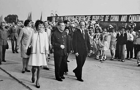 1973年10月10日,特魯多偕夫人抵達北京,周恩來等到機場迎接
