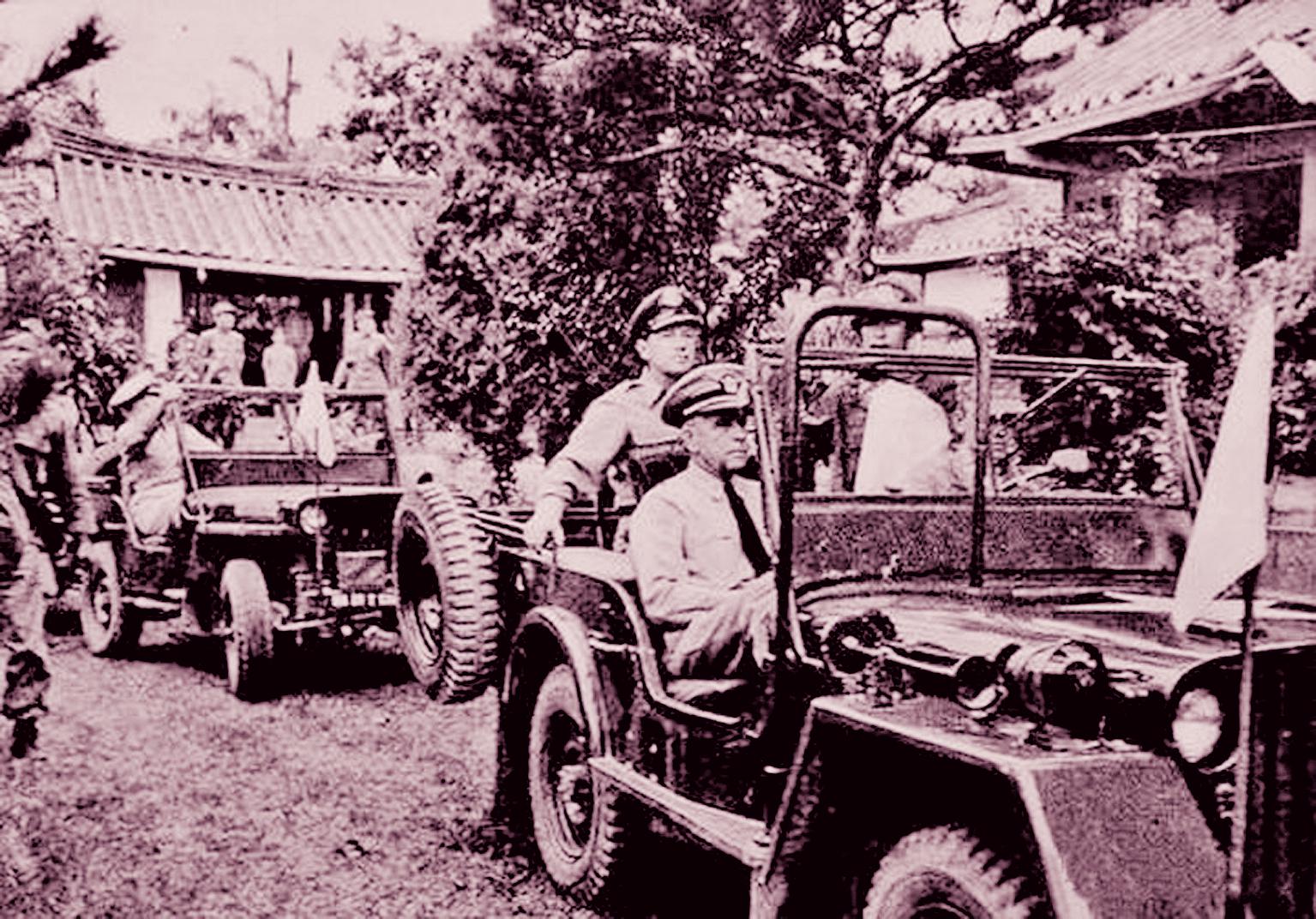 “聯合國軍”代表團乘坐插有白旗的汽車來到開城進行談判。前車乘坐者即他們的首席代表美國海軍中將喬埃