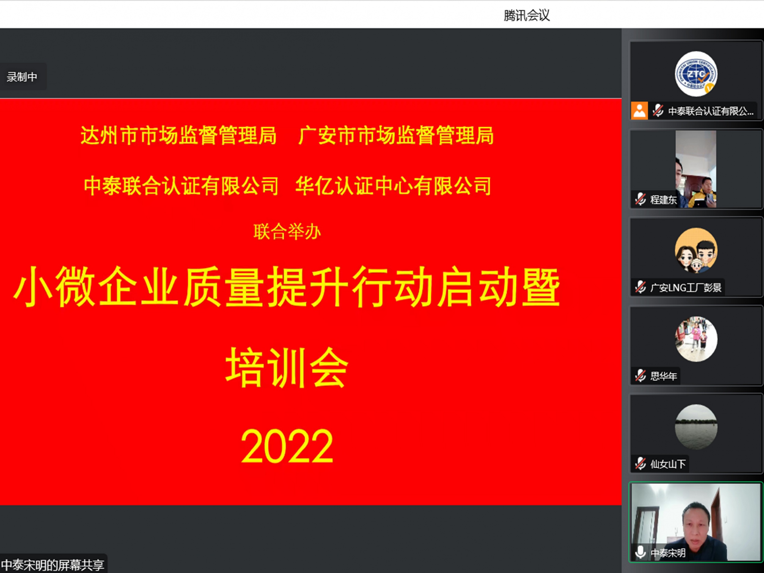按照國家市場監(jiān)督管理總局“小微企業(yè)質(zhì)量管理體系認證提升行動”要求和“不斷推動提升行動走實走深,讓更多小微企業(yè)受益”以及四川省市場監(jiān)督管理局“關于深入學習貫徹黨的二十大精神暨開展小微企業(yè)質(zhì)量管理體系認證提升行動”會議號召。中泰聯(lián)合認證有限公司積極響應,秉承攜手企業(yè)共同、持續(xù)進步的目標。在12月9日開始聯(lián)系省局指示的地方局,通過線上培訓方式,分別舉辦3期《四川省小微企業(yè)質(zhì)量提升行動啟動會議》。